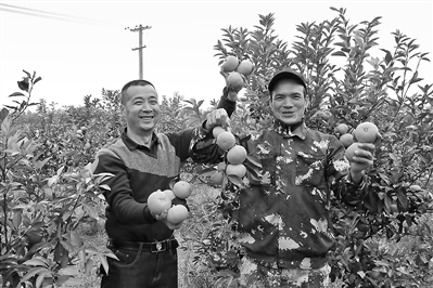 2021年,我市柑橘类水果种植面积18.78万亩,投产面积14.99万亩,预计总产量23.74万吨,比上年增产6.65万吨,增长28.42%。其中,预计沃柑产量9.01万吨,比上年增产1.63万吨。图为1月12日,平南县上渡街道上渡村村民合作社沃柑蜜柚种植示范基地里,村民正在展示成熟的沃柑。 (记者 李园园 摄)