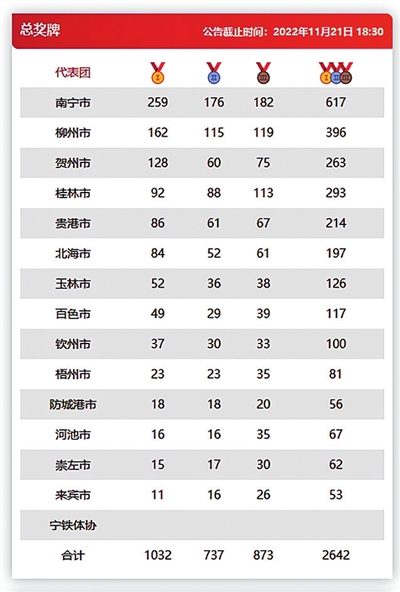 总奖牌 公告截止时间:2022年11月21日 19:00