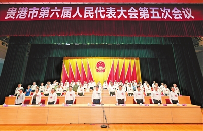 本报讯 (首席记者徐智坚)8月28日,贵港市第六届人民代表大会第五次会议在市会议中心大会堂举行。来自全市各条战线的市人大代表肩负人民重托出席盛会,依法履行职责。