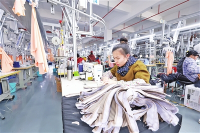 本报讯 (全媒体记者张庆杰)2月21日,记者走进位于市粤桂产业园区的贵港市德熙纺织厂看到,宽敞明亮的车间内,一排排缝纫机飞快运转,一件件衣服在缝纫工人的巧手翻飞中快速成型,现场一派繁忙景象。