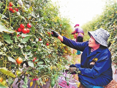 连日来,位于覃塘区山北乡万寿村的浩得水果种植园基地抢抓圣女果成熟上市的好时机,喜迎销售“开门红”。该基地种植的千禧圣女果、黄金圣女果、青甜2号圣女果等品种鲜果从这里“启程”,“奔赴”区内和广东等地市场。图为近日,基地工作人员正在采摘圣女果。