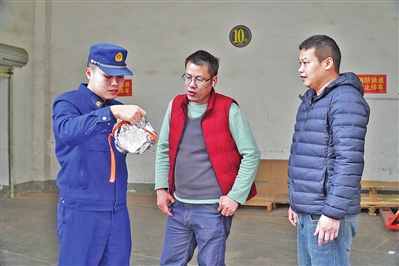 近日,贵港市消防救援支队成立复工复产消防安全指导服务小组,到企业开展“千企万户”上门服务活动,着力防范化解消防安全风险。图为消防安全指导服务小组成员正在检查企业消防设施设备。
