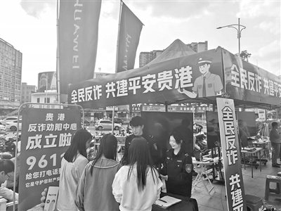 3月3日,市公安局反诈中心、港北公安分局反诈中心在城区客世界广场举行“惠民消费国补 网络反诈同行”反诈宣传活动,针对诈骗分子利用“国家补贴、红包返利”等虚假诱惑信息引流实施诈骗手段进行精准宣传,增强群众反诈意识。图为宣传活动现场。全媒体记者蒙思婷 通讯员何能宁摄影报道