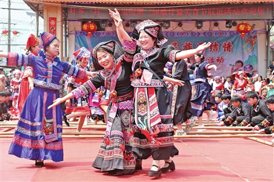 4月1日,港北区中里乡中里街举行主题为“传承民族文化,促进民族团结”的歌圩暨美食节活动,当地18支文艺表演队带来了山歌对唱、竹竿舞、抛绣球等富有壮族特色的节目。全媒体记者何美凡摄