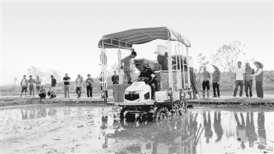 近日,我市首台水稻有序抛秧机在港南区桥圩镇锦垌村亮相,吸引来自周边乡镇的农机专业合作社代表、农机企业代表、种粮大户等前来观摩学习。据悉,该机械为14行水稻抛秧机,相较于传统插秧机,可提高作业效率1倍以上,一天可以抛秧40多亩。