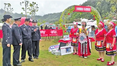 在广西三月三小长假期间,平南县禁毒办组织开展了一系列形式多样、内容丰富的禁毒宣传活动,巧妙地将禁毒知识融入多彩的“三月三”文化。其中,最引人注目的当属禁毒主题的歌舞表演。“毒品之害猛于虎,家破人亡泪无数,全民齐心共防毒,幸福平南展宏图。”山歌手用质朴的歌声,将毒品的危害和禁毒的重要性传递给每一位听众。禁毒竹竿舞也吸引了众多群众参与,舞者一边喊着“跳竹竿,齐禁毒”的口号,一边灵活地在开合的竹竿间跳动,现场气氛热烈。