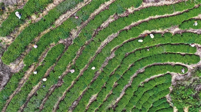 4月22日,位于港南区木格镇良坡村的北一茶厂600亩茶园嫩芽吐翠,40余名茶农头戴竹笠穿梭茶垄,娴熟采摘春茶。自3月7日开采以来,该茶厂日均收获鲜茶200余公斤,预计今年春茶产量达3000公斤、全年可达1.5万公斤。该茶厂以传统工艺与现代技术结合,产品以“德诚和”品牌为主,涵盖绿茶、红茶、白茶和六堡茶4个品类。其中,“贵港毛尖”“贵港红茶”“贵港白茶”等产品获得了国家级富硒认证,深受市场青睐。图为茶农正在采摘春茶。 全媒体记者杨小露摄
