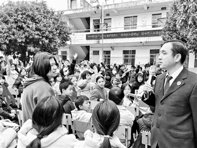 桂平市人民检察院利用“浔江灯塔”法治宣传月活动等平台,组建法治宣讲团,开展法治进校园活动。在普法课堂上,检察官抛出“学法有何意义”“怎样用法律化解同学之间的矛盾”等问题,结合真实案例,释法说理、互动交流,引导学生知法、守法、学法、用法。据统计,春季期开学至今该院宣讲团队已先后到13个乡镇、33所中小学校开展普法宣传,传递法治薪火。图为近日该院检察官在社坡镇加惠小学普法课堂上与该校师生交流。刘映摄
