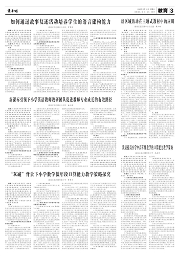 摘要:幼儿园主题式课程又称“核心课程”,是以儿童生活中的主题为轴心设计的课程。区域活动是幼儿一种重要的自主活动形式,其根据幼儿发展需求和主题教育目标创设立体化育人环境,教学活动中把区域活动和主题式教材相融合,能调动幼儿学习的积极性,促进幼儿之间互动,进而达到寓教于乐的教育理念。