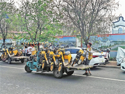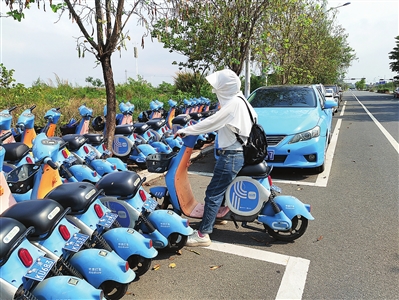 大一学生小何觉得出行还算方便。学校门口有四五家提供租车服务的店铺,电动自行车租一小时5元,租一天还有优惠,只需30元左右。他本人很少骑共享电动自行车,主要靠租电动自行车到市区采购生活用品。