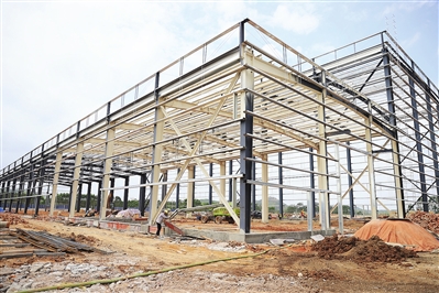总投资9亿元的广西中船大型风电智能化装备产业园项目落户平陆运河经济带贵港经济开发区石卡园,于今年初开工,目前正在建设厂房主体结构。项目全部建成达产后预计可实现年产值38亿元,提供就业岗位400个。图为5月14日拍摄的项目建设现场。全媒体首席记者黄静华摄