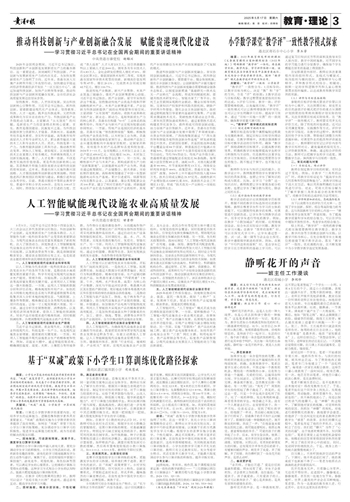 坚持教育、科技、人才协同发展,突出科技创新核心引擎作用。习近平总书记指出,抓科技创新,要着眼建设现代化产业体系,坚持教育、科技、人才一起抓,既多出科技成果,又把科技成果转化为实实在在的生产力。科技创新是产业升级的动力源泉,主要解决“从无到有”的问题,是新质生产力的显著特点和核心要素。首先,教育是强国建设、民族复兴之基,为科技创新提供智力资源和人才储备。具体而言,基础教育培养基本素质、夯实科学基础,高等教育培育高层次人才和专业研究人才,职业教育输送大量技术工人和专业技术人员。其次,科技是第一生产力,为教育提供创新工具和方法,推动教育形态变革。例如人工智能、虚拟现实、区块链等新技术正在重塑人才培养模式,科研载体构筑人才创新实践高地。第三,人才是第一资源,不仅是教育实践的价值结晶,更是科技创新的核心动能,其思维跃升和能力进阶直接决定着科技创新的质效突破。近年来,贵港市深入实施科教兴国战略、人才强国战略和创新驱动发展战略,持续推进西江教育园区的规划与建设,积极引进和创办各类学校,目前,贵港市拥有中等职业教育学校、普通中学和小学共1039所,在校生109.07万人。同时,持续加大高层次人才引进的力度,完成“贵人返贵”人才入库2.5万人,回引贵港籍本科以上紧缺人才近2000名,拥有各类专业技术人员6.83万人。全社会研发经费投入增长37.8%、排在全区第3位,荣获国家技术发明二等奖,实现贵港市国家科学技术奖零的突破。新增高价值发明专利47件,增长20.1%,完成技术合同成交额42.7亿元,增长116.7%。