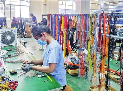 位于西江工业园区的广西蒲公英电子有限公司,专业研发、生产和销售电动自行车、摩托车主线、放电口、电源线、电池连接线及相关注塑产品,着力打造高品质线束。公司拥有员工300余人,采用先进的全自动生产设备、半自动设备,主要为爱玛、台铃、绿源、欧派等整车头部企业配套线束,年产线束系列产品200多万套。图为近日,工人在生产车间生产线束产品。全媒体首席摄影记者张庆杰摄