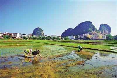 眼下正是晚稻种植的攻坚关键期,港南区各地以时不我待的劲头抢抓农时。据了解,港南区今秋计划播种水稻23.9万亩,截至7月29日已经完成插秧面积 9.25 万亩,超过计划种植面积的三成。图为近日新塘镇山边村农民插秧的情景。刘志宁摄