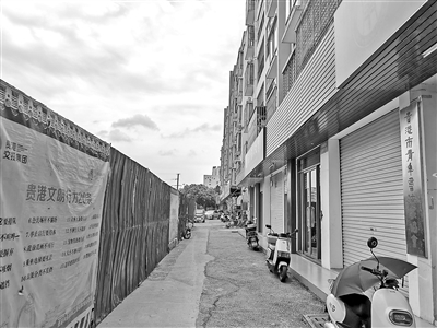 7月30日,记者在现场看到,这段围挡外有15间商铺,其中3间未挂招牌。挂着招牌的商铺有的大门紧闭,开门营业的商铺生意也很冷清。