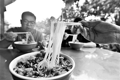 在柳州市一家螺蛳粉店,市民在吃螺蛳粉(9月14日摄)。
