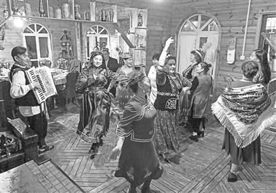 朋友们穿着民族服饰来到“朋友庄园”,马大姐招呼大家进屋就坐。亲朋好友拉着家常,品尝着马大姐的拿手菜和小院里结的新鲜水果。房间里飘扬起欢快的歌声,不同民族的亲友们在房间里共舞。