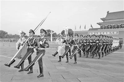 10月1日清晨,隆重的升国旗仪式在北京天安门广场举行,庆祝中华人民共和国成立76周年。 新华社记者鞠焕宗摄