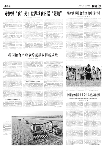 10月16日是第45个世界粮食日,多地学校开展爱粮惜粮教育活动。今年世界粮食日的主题为“手拉手共倡多样美食,聚合力同创美好未来”。新华社发(计海新摄)