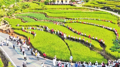 这份活力在10月18日达到新的高潮——桂平市“运动之城 休闲之都”文化主题系列活动在此热烈举行。徒步、滑板竞技、梯田摸鱼、“乡野农耕秀”等活动轮番上演,巧妙融合传统农事、现代运动与艺术创作,让游客在体验中感受乡村魅力。活动带动下,“稻香佛荔丰收季”的话题在网络上热度持续攀高,进一步打响了佛荔村的乡村旅游品牌。