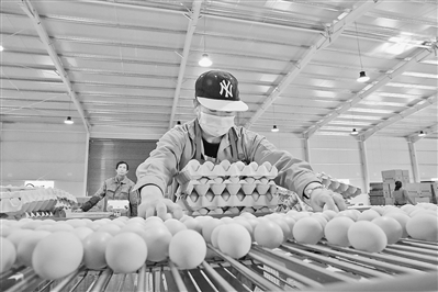 华兴禽业蛋鸡项目位于港南区东津镇,计划投资3.2亿元,笼养品种主要以罗曼系列、海兰系列为主,产品主要销往广西、广东等地。目前开始产出首批蛋,日产蛋达10吨。据了解,项目全部建成后,每年可向市场供应3.2万吨新鲜鸡蛋、3万吨有机肥,年产值预计达3.5亿元人民币,带动本地150人就业,带动农户500户持续创收。图为近日工作人员正在分拣鸡蛋。