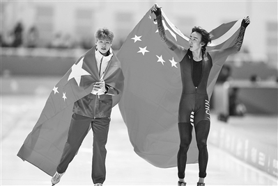 2月9日,吴宇(右)与刘瀚彬在比赛后庆祝。
