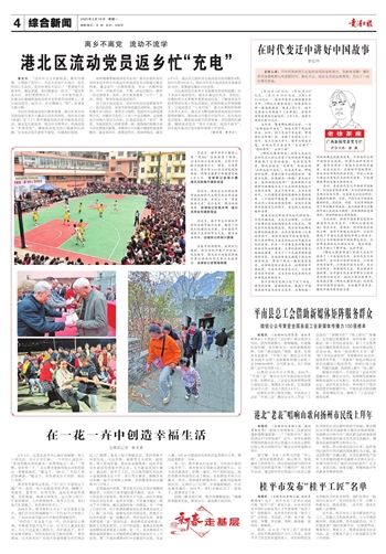 如何精准掌握流动党员去向?港北区组织各村对回家过年和在外地过年的流动党员分别建立联系档案,通过进行一次摸底排查、举办一次教育培训、召开一次座谈交流、开展一次走访慰问、做好一次志愿服务、组织一次实地参观等“六个一”活动,管好、服务好每名流动党员。