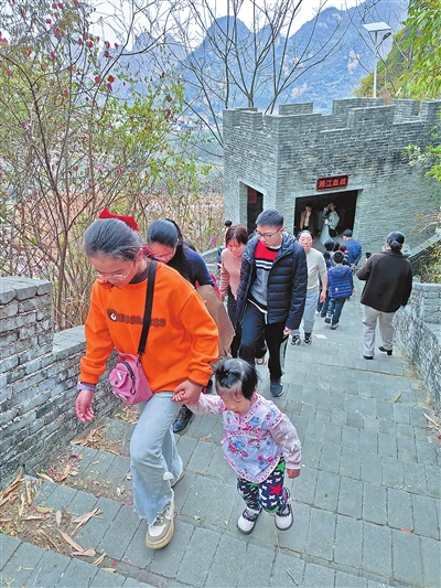 春节假期期间,我市天气晴好,许多市民开展户外运动,欢度春节。图为近日游客在覃塘区蒙公镇新岭村灵龟山长城登高。全媒体记者郭晓枫摄