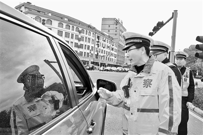 夜色下,车流量持续增多,我市交警始终坚守岗位,默默地守护着一方平安。