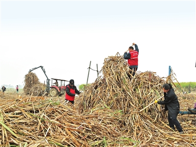 2月28日,市生态环境局、市农业农村局和广西农垦西江农场有限公司组织100多名党员志愿者到西江农场五分场开展“蔗叶离田 助力春耕 守护蓝天”主题活动。活动期间,党员志愿者认真清理甘蔗叶,还向周边的蔗农发放宣传资料,普及秸秆综合利用知识。图为党员志愿者正在清理甘蔗叶。