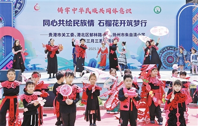 春暖壮乡歌如海,八方宾客踏歌来。3月24日上午,港北区郁林路小学举办“同心共绘民族情 石榴花开筑梦行”2025年欢庆广西三月三民族歌舞表演活动,为全校师生呈现了一场盛大的视听盛宴,让同学们对传统节日和民族文化有更广泛的认识和更全面的了解,营造了喜庆热闹的节日氛围。图为活动现场。全媒体首席摄影记者张庆杰摄