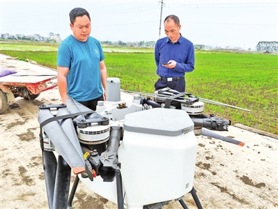 “无人机施肥,10秒钟就能施一亩地,误差不超过1厘米。”该合作社农机手李鸿才说,无人机施肥喷药是当前水稻生产机械化无人作业较成熟的环节,依靠北斗卫星导航系统,设置飞行线路全覆盖后,误差不超过1厘米,不会漏施哪一块地,也不会重复作业。
