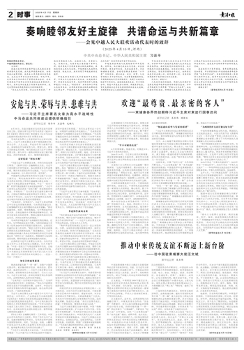 “参天之木有其根,怀山之水有其源。”中越关系根基在人民、血脉在人民、力量在人民。长期以来,从携手救亡图存播下革命火种,到并肩战斗实现国家独立和民族解放,再到共同迈上现代化征程,中越两国人民始终风雨同舟、休戚与共,共同书写了中越友好历史篇章。