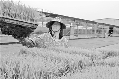 4月3日,新村村农民在育秧中心搬运秧盘。全媒体记者杨小露摄