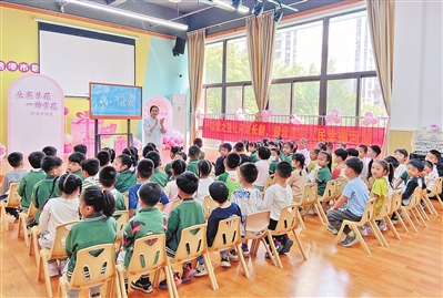 近日,市水利局组织志愿服务队在港北区碧桂园乐乐堡幼儿园举办“节水进校园”宣传活动。全媒体记者易舟琴摄