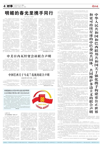 一、双方一致同意强化携手构建更公正世界和更可持续星球的中巴命运共同体,强调自2024年11月习近平主席对巴西进行国事访问以来,两国在推动包容增长、科技创新和可持续发展领域取得了具体进展和互利成果。双方强调两国关系具有全面性,一致同意持续扩大并深化务实合作,进一步活跃文化交流,增进两国人民相互了解,加强在国际组织和多边机制中的合作,持续展现两国关系的全球影响力、战略价值和长远性。