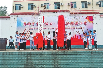 9月10日,贵港市第八高级中学举行庆祝教师节活动暨新校牌揭牌仪式,标志着该校由贵港市港北区高级中学正式更名为贵港市第八高级中学。图为活动现场。全媒体记者陆颖敏 见习记者莫文兰摄影报道