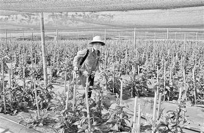 港南区新塘镇特色蔬菜订单农业项目投资约2500万元,主要种植长寿菜、树仔菜、赤苍藤、石斛菜、当归菜、血通菜等特色蔬菜,产品主要销往北京、四川、辽宁以及粤港澳大湾区。图为1月2日,工人在给长寿菜喷洒叶面肥。