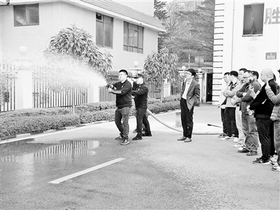 1月2日下午,覃塘区消防救援大队、区农业农村局、区应急管理局联合组织畜禽监测企业开展消防安全培训演练,推动企业压实消防安全责任,增强消防安全意识,强化火灾防控能力。图为消防安全演练现场。