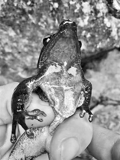 本报讯 (全媒体记者黄自福)2024年12月18日,广西大平山自然保护区管理处工程师黎泽标在日常动物监测中意外地发现一只嘴巴长得像“鸭嘴”的蛙。黎泽标说,他在大平山自然保护区工作25年了,头一次看到这种长相奇特的蛙,但他当时无法确定这种蛙叫什么名字,于是他捉了4只样本送到广西玉林师范学院生物与制药学院,经该学院动物专家鉴定确认,该蛙是中国特有种,名叫鸭嘴竹叶蛙。