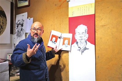 近年来,曾义又受吴山明大师启发,采用独特的冰凌水墨技法画人物肖像。他通过水墨的浓淡变化和笔触的细腻处理,巧妙地表现出人物面部的光影效果,增强画面的立体感和真实感。去年,为庆祝新中国成立75周年,曾义应市退役军人事务局的邀请,为我市218名抗美援朝老兵画肖像。“通过冰凌水墨这种独特的表现形式,能够更好地传递出老兵们坚韧、顽强、不屈的精神品质。”曾义告诉记者,他所画的抗美援朝老兵肖像,已编印成画册《国家脊梁 人民英雄》,这些老兵是贵港人民心中的丰碑,值得我们敬仰和学习。
