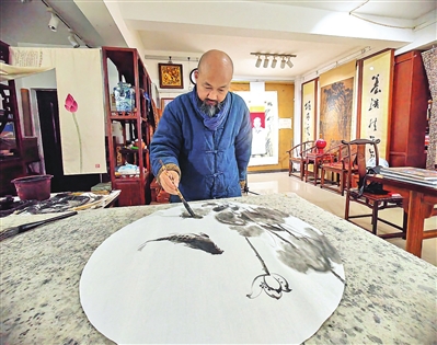 在港北区凤凰城小区,有一间充满艺术气息的工作室,这里是广西工艺美术大师、贵港市布山书画院院长曾义的创作天地。