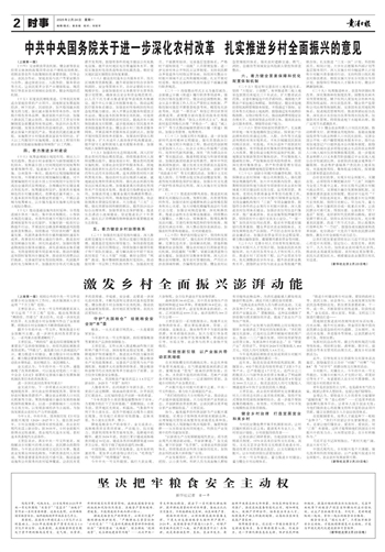 翻开今年的中央一号文件,聚焦推进乡村全面振兴主题,进一步深化农村改革贯穿全文,一系列重点部署清晰明了。