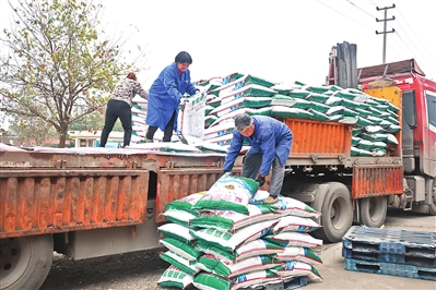 在五里镇云表村,一辆载着10吨复合肥的大卡车停在云表村农资经营点前,装卸期间,不少路过的村民前来询问价格。村民韦克云则在一旁盘算起了自家3亩水田的用肥量,“今年打算种两季水稻,预计要买400公斤化肥。”韦克云告诉记者,每年春耕,他都会在村里的农资点购买化肥,品质有保障,价格优惠,离家近,十分方便。“有时化肥不够了,打个电话,农资点就有人帮忙送到田里,很方便。”韦克云说。