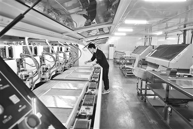 广西奔腾电路有限公司项目位于港北区西江工业园,计划总投资2.5亿元,主要生产双面多层电路板、HDI线路板。该项目1月15日试产,目前全流程生产正常,近百人返岗复工。图为2月12日拍摄的公司生产车间一角。全媒体首席记者黄静华摄