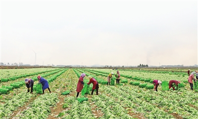 近日,覃塘区五里镇林村林屯宽阔的田野上,10多名务工人员正忙着采收和打包大肉芥菜。不远处的连片卷心菜地里,务工人员正在除草。放眼望去,整片田野蔬菜多种多样,长势喜人。农耕道上,载满蔬菜的几辆大货车陆续驶离。“这片田地原来多石多坑,散户耕种,收获甚少,近几年来经过综合整治,土质变好了,方便耕种,政府还引来老板连片承包种菜,我们不仅可以收租金 ,还可以在家门口打工,收入增加了,生活更好了。”林村村民龙梅珍高兴地说。