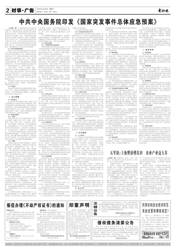 中共中央国务院印发《国家突发事件总体应急预案》
