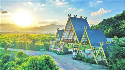 用蒲扇将“气球鸡”赶入鸡笼,体验乡村生活乐趣。
