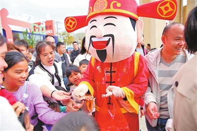 “咚咚锵!咚咚锵!锣鼓一打响喳喳,龙凤麒麟进村到你家:恭喜发财拜大年,福禄寿喜进你家。”大年初三,已被列入自治区非物质文化遗产保护名录的木格镇水泉村龙凤麒麟表演队走村串户,向群众拜年。活灵活现的龙、凤、麒麟所到之处鼓乐齐鸣,处处弥漫着欢乐喜庆的新春气氛,观众的脸上洋溢着快乐的笑容。