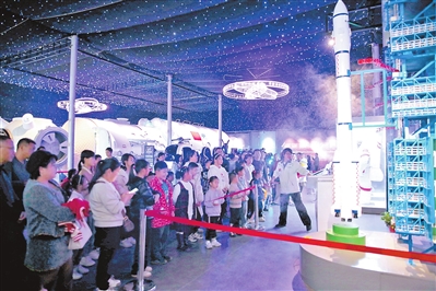 科技馆工作人员庞夏婷介绍,近段时间,该馆结合春节、元宵等节日策划了航空航天暨国防科技嘉年华活动以及“元宵喜乐 情满山边”主题游乐活动,举办大型梦幻灯展,为游客提供一个欢乐祥和的节日好去处,进一步丰富山边旅游区的文化内涵,推动文化旅游产业融合发展。